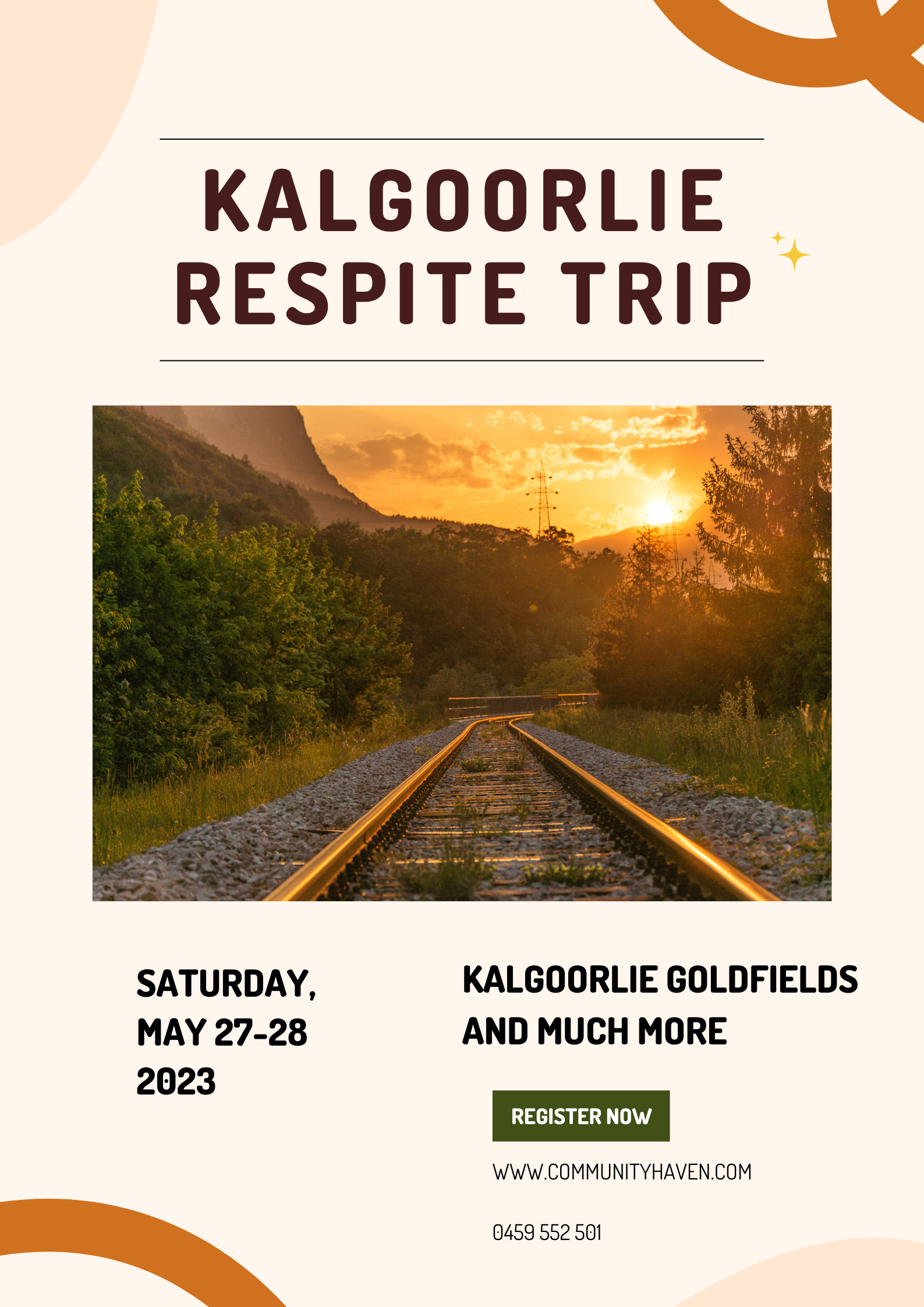 Attend a respite trip to WA’s goldfields region on the Prospector Train. Enjoy amazing views along the way, experience the nearby super pit, and much more. Please contact for more information.
